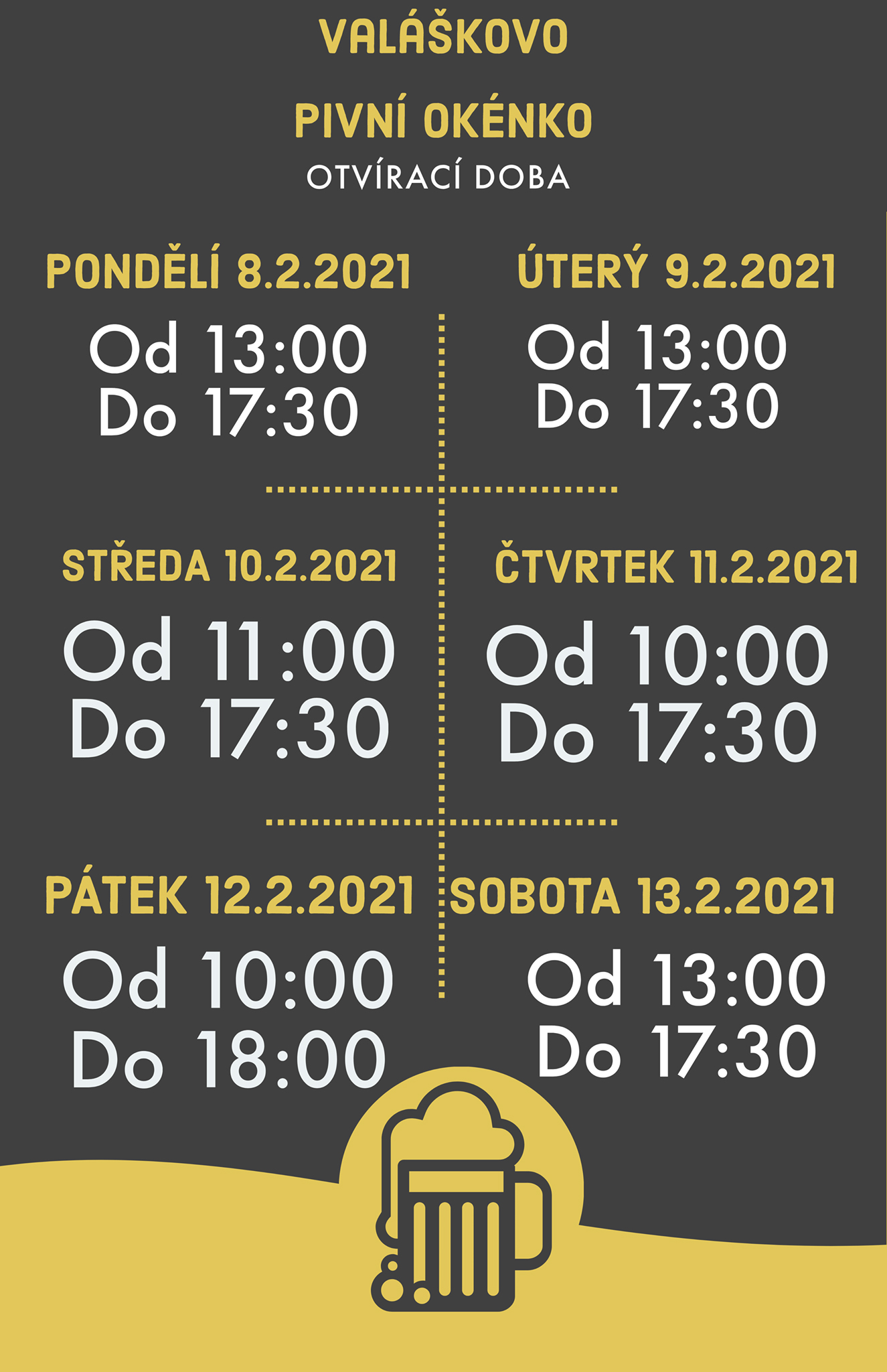 Otevírací doba 8.2.2021 - 13.2 2021 |