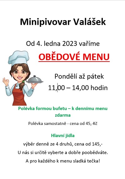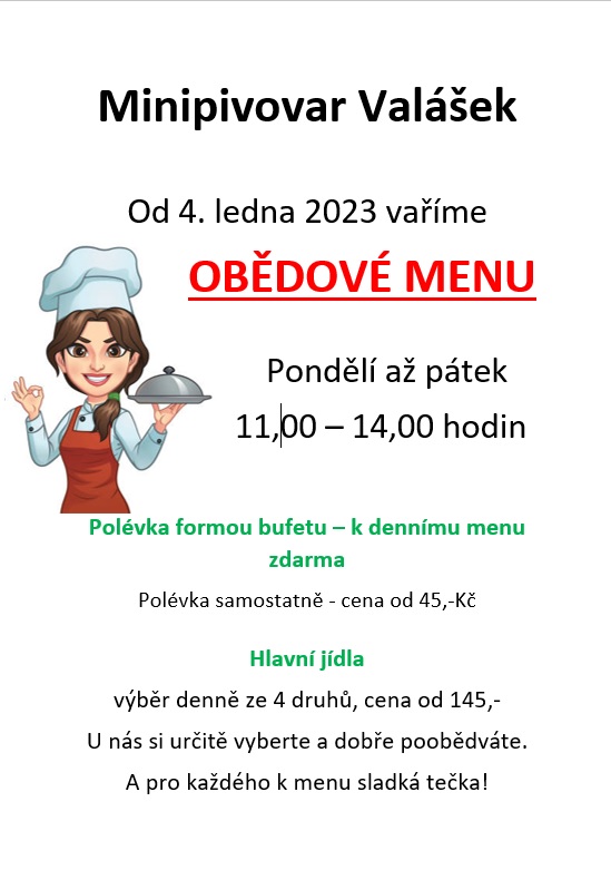 OD 4.1.2023 PRO VÁS OPĚT VAŘÍME MENÍČKA S NOVOU KUCHAŘKOU. PŘIJĎTE SE DOBŘE NAJÍST.TĚŠÍME SE NA VÁS - OTEVŘENO OD 11.00 HODIN |